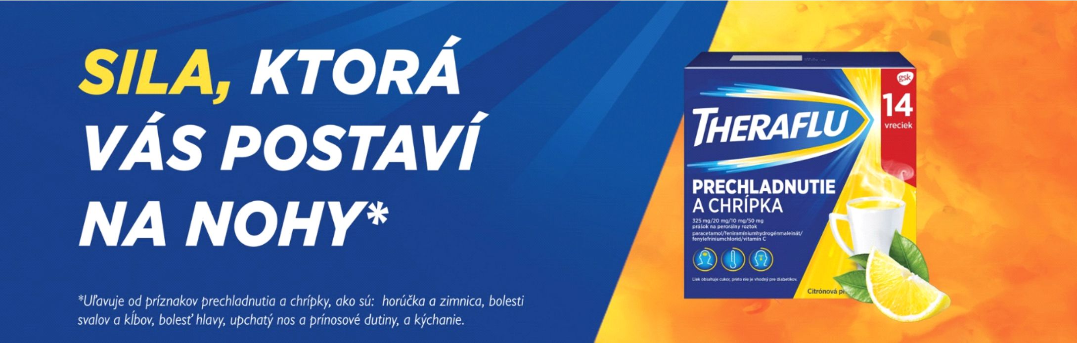 Theraflu prechladnutie a chrípka je sila, ktorá vás postaví na nohy pri prvých príznakoch prechladnutia a chrípky. Rozumieme výzvam, ktorým čelíte počas prechladnutia a chrípky, preto sme vytvorili všestranný liek, ktorý vás zbaví nepríjemných pocitov pri chrípke a prechladnutí, a vy sa tak budete môcť venovať činnostiam na ktorých vám záleží. Theraflu je liek na prípravu horúceho nápoja.