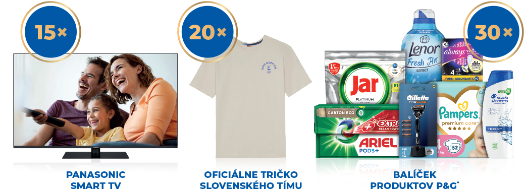 1. V termíne od 15. 7. 2024 do 15. 9. 2024 nakúpte výrobky značiek P&G zahrnuté do kampane ( Always, Ambi Pur, Ariel, Aussie,Blend-a-med, Blend-a-dent, Discreet, Gillette, Gillette Venus, Head & Shoulders, Herbal Essences, Jar, Lenor,Mr. Proper, Naturella, Old Spice, Oral-B, Pampers, Pantene, Swiffer, Tampax.) v akomkoľvek kamennom alebo online obchode na území Slovenskej republiky a uschovajte si doklad o ich nákupe.