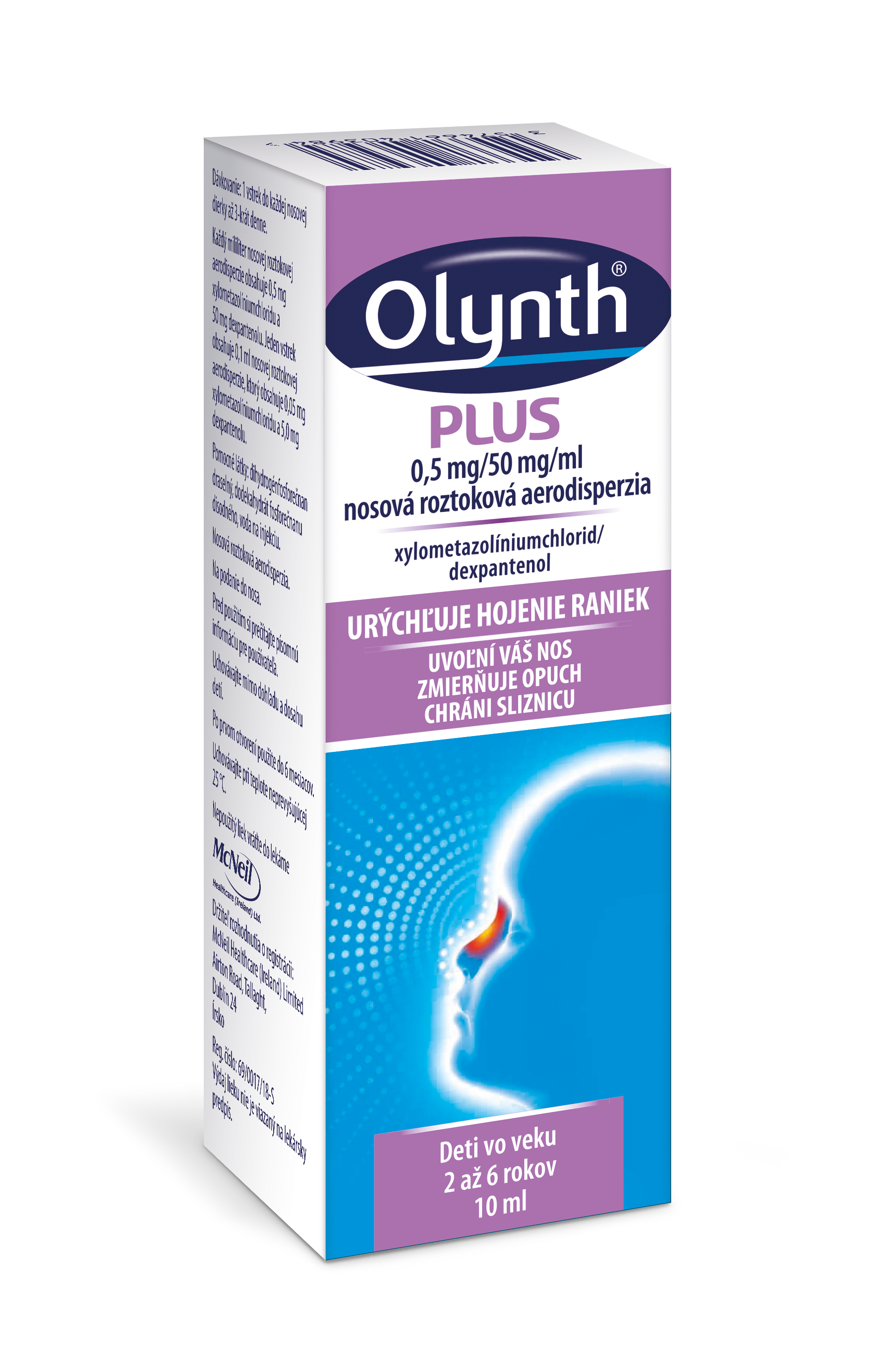 Keď vaše dieťa trápi nádcha a nachladnutie, vyskúšajte Olynth® Plus na podporu hojenia poranenej nosovej sliznice. Nosový sprej Olynth® Plus s dexpantenolom uvoľňuje upchatý nos, podporuje hojenie poranenej nosovej sliznice a chráni ju. Neobsahuje konzervačné látky. Rýchla a účinná úľava od nádchy a upchatého nosa už po 5 minútach.