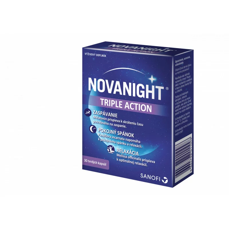 Výživový doplnok s obsahom melatonínu, vitamínu B6 a výťažkov z mučenky pleťovej, medovky lekárskej a slncovky kalifornskej.