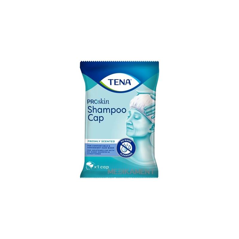 TENA Shampoo Cap je neoplachovacia, pohodlná alternatíva k umývaniu vlasov vodou ideálna pre imobilných klientov.