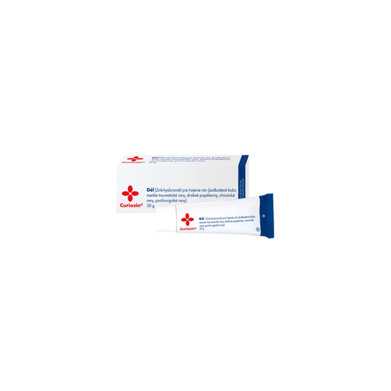 CURIOSIN® je číry bezfarebný gél bez vône určený na vonkajšie použitie, hlavnou zložkou je komplex zink-hyaluronát.