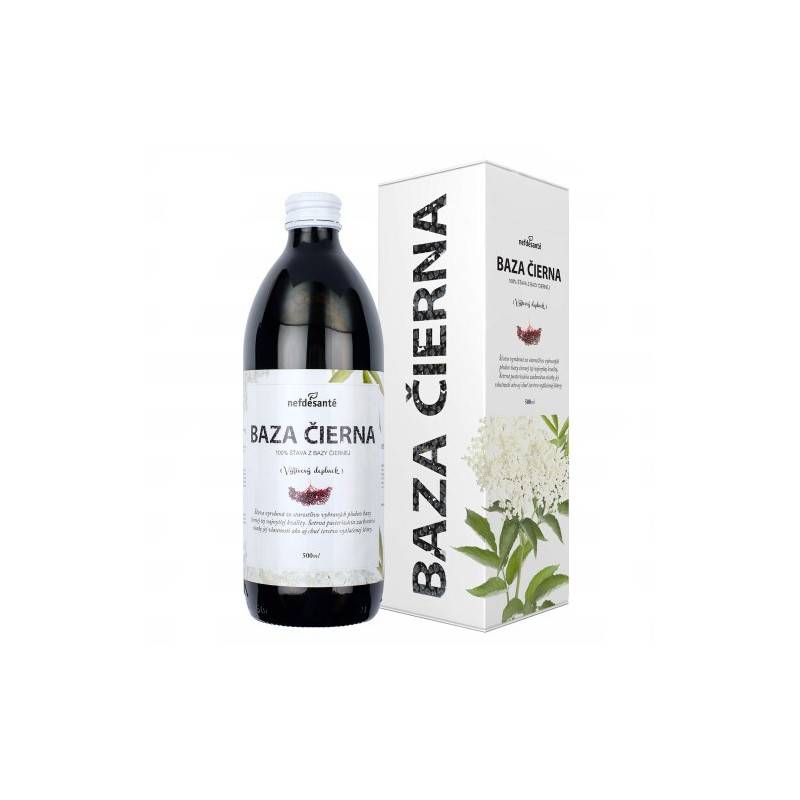 Výživový doplnok. 100 % pasterizovaná šťava s prídavkom vitamínu C vyrobená zo starostlivo vybraných plodov bazy čiernej (Sambucus nigra).