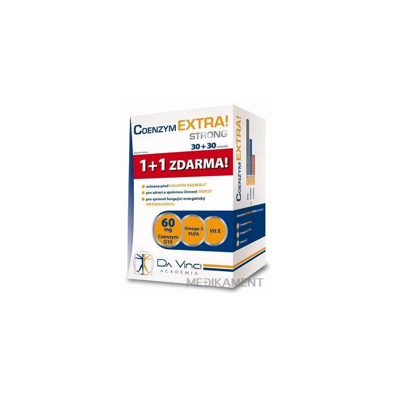 Výživový doplnok, ktorý zaisťuje unikátnu kombináciu coenzymu Q10 – 60 mg, omega-3 PUFA, vitamínu E a najmodernejšej technológie výroby. COENZYM EXTRA! STRONG: