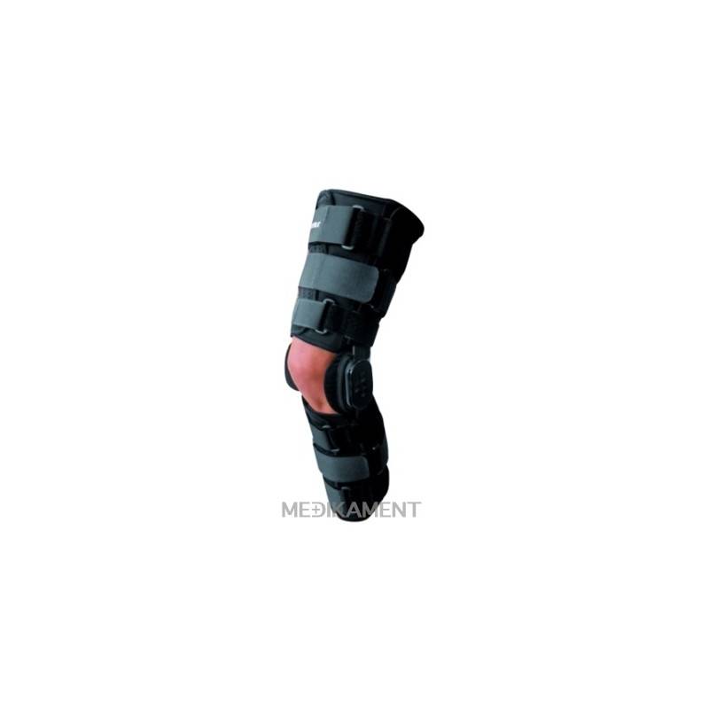 Ortéza na stabilizáciu kolenného kĺbu s možnosťou nastavenia rozsahu pohybu kolenného kĺbu pomocou dvojosích dláh, ktoré umožňujú nastavenie extenzie a flexie v stupňoch 0°, 15°, 30°, 60° do 90°.
