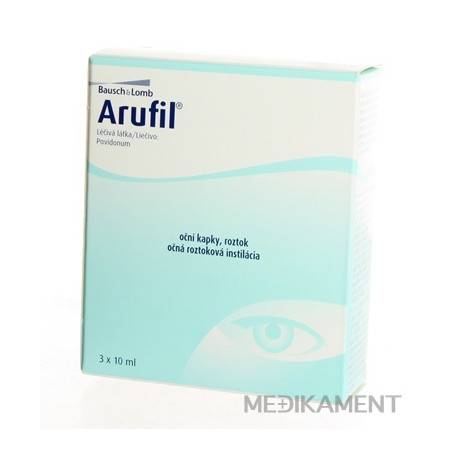 Arufil (oftalmologikum) je sterilný liek pre náhradu sĺz. Používa sa na zlepšenie zvlhčenia oka, pri ťažkostiach ako sú napríklad: pocit cudzieho telieska, pálenie alebo pocit sucha na oku. Povidón je vo vode rozpustná zmes rovnorodých polymérov, ktoré svojou vhodnou väzkosťou napomáhajú nahradzovať úbytok prirodzeného ochranného filmu na povrchu rohovky u osôb postihnutých „suchosťou očí“, to značí stavom, ku ktorému dochádza pri poklese produkcie sĺz.