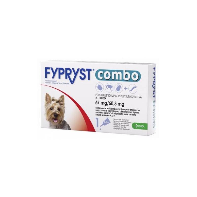 FYPRYST combo 67 mg/60,3 mg roztok na nakvapkanie na kožu pre malé psy (od 2 - 10 kg). Obsahuje kombináciu dvoch účinných látok: fipronilu a metoprenemu. Roztok sa nachádza v pipetách, pričom každá pipeta obsahuje: