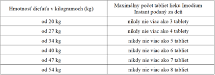 pre deti. Následne sa podáva 1 tableta (2 mg) po každej ďalšej riedkej stolici.