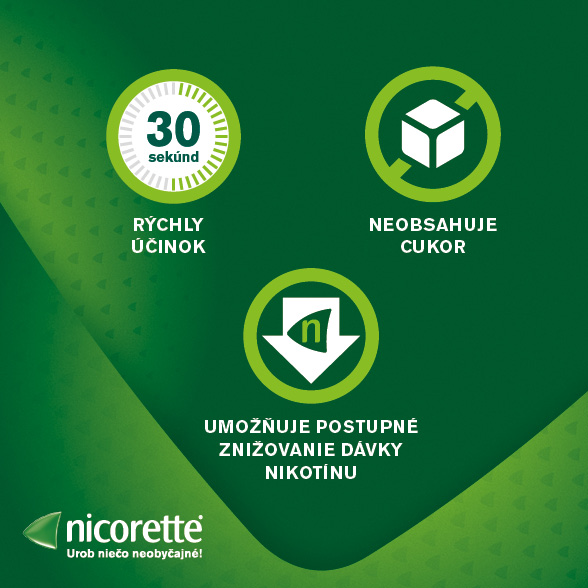 Účinok je rýchly – orálny sprej Nicorette® ti pomôže zahnať chuť na cigaretu už za 30 sekúnd, pri užití dvoch dávok. Vďaka svojim rozmerom sa ideálne vojde do tašky alebo kabelky, takže ho môžeš mať stále pri sebe, nech ťa prekvapí chuť na cigaretu kdekoľvek – doma, v kancelárii, vonku alebo na stretnutí s priateľmi.