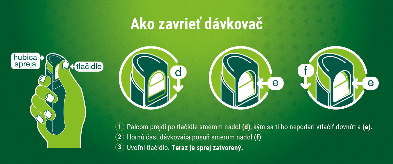 2 – 4 za deň, prestaň orálny sprej používať úplne. Blahoželáme, podarilo sa ti to – konečne sa môžeš poriadne nadýchnuť!