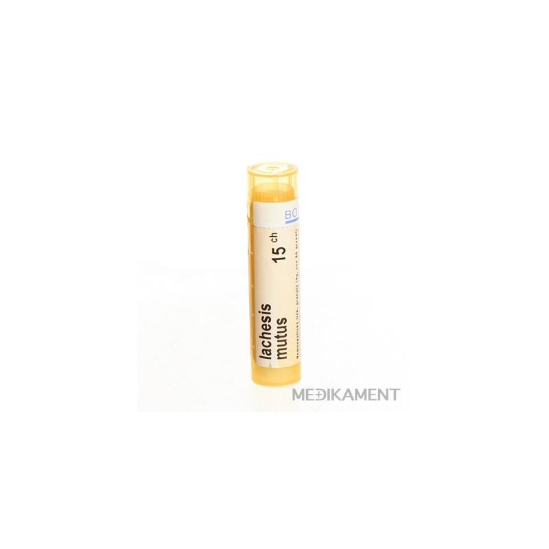 2. Hemorágia čiernej krvi: Lachesis je indikovaný, pokiaľ pozorujeme zlepšenie bolestí alebo celkového stavu výtokom: cefalea zlepšená krvácaním z nosa, bolesti hemoroidov zlepšené krvácaním, dysmenorea zmiernená menštruáciou. Predpisuje sa v riedení 5 - 9 CH, 5 granúl každé tri hodiny.