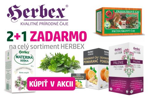 Pri kúpe 3 produktov značky Herbex získate najlacnejší produkt zadarmo. Akcia platí do 30.11.2025