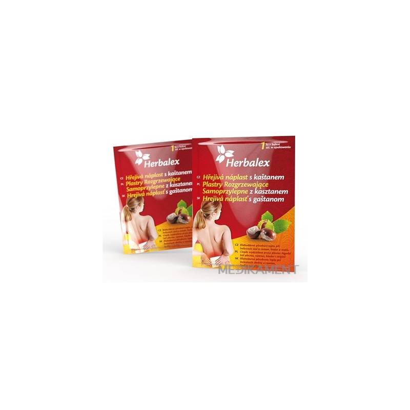 Herbalex hrejivá náplasť s gaštanom prináša pocit úľavy a prehriatie v oblasti namáhaného chrbta, ramien, bedier či svalov prirodzeným spôsobom - pôsobením suchého tepla. Suché teplo je dlhodobo známe pre svoje priaznivé účinky na pohybový aparát. Zároveň poskytuje hlbokú svalovú relaxáciu pri únave. Po vybratí náplati z ochranného (predajného) obalu začnú aktívne látky obsiahnuté vo vankúšiku reagovať s kyslíkom, vďaka čomu sa náplasť rozohreje. Hrejivý efekt sa na cieľovom mieste prejavuje po dobu až 15 hodín.