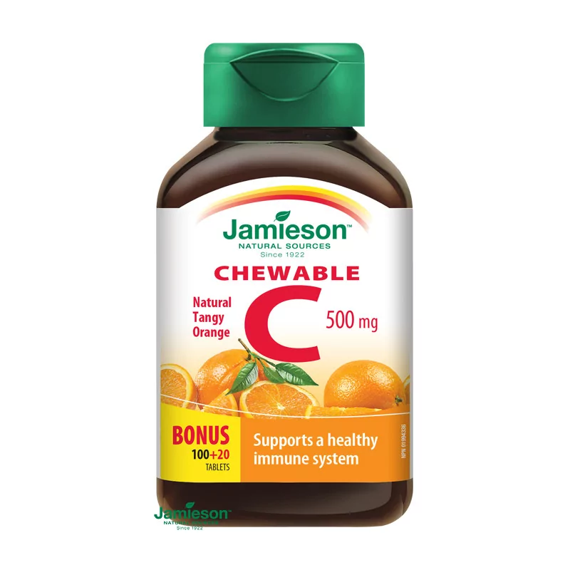 Výživový doplnok s náhradným sladidlom s obsahom vitamínu C vo forme tabliet na cmúľanie s prírodnou osviežujúcou príchuťou pomaranča s obsahom podpornej zmesi z prírodných zdrojov z rutínu, hesperidínu, bioflavonoidov, malpígie a šípok.