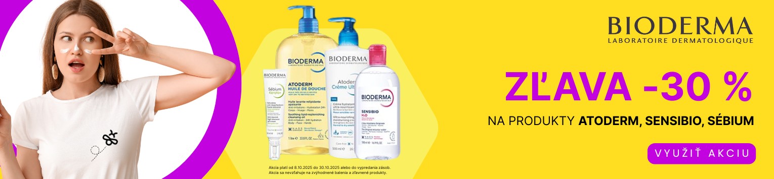 ZĽAVA 30% na produkty z rady Atoderm, Sensibio, Sébium. Platí do 31.10.2025