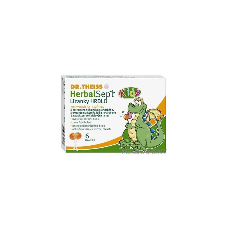 Zdravotnícka pomôcka Herbal Sept Kids lízanky prispievajú k obnove rovnováhy a obnove primárnej ochrannej funkcie sliznice ústnej dutiny a hrdla, ktorú zároveň hydratujú a osviežujú. S extraktom z lišajníka islandského, s extraktom z koreňa ibiša lekárskeho a extraktom zo šalviových listov.