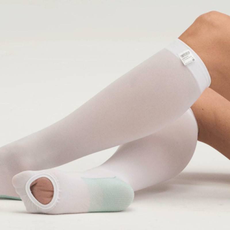 Je potrebné zvoliť vhodnú veľkosť pančúch. Kompresívne pančuchy sa jednoducho navlečú na dolnú končatinu ( najprv sa oblečie spodná pančucha a na ňu sa natiahne vrchná pančucha). Systém pančúch vytvorí na končatinu konštantný pokojový tlak. Možnosť nosenia 24 hodín. Môžu slúžiť aj na fixáciu krytia na rane a tým zabezpečiť, aby sa krytie neposunulo. U imobilných pacientov ostávajú pančuchy oblečené počas celej doby na lôžku.