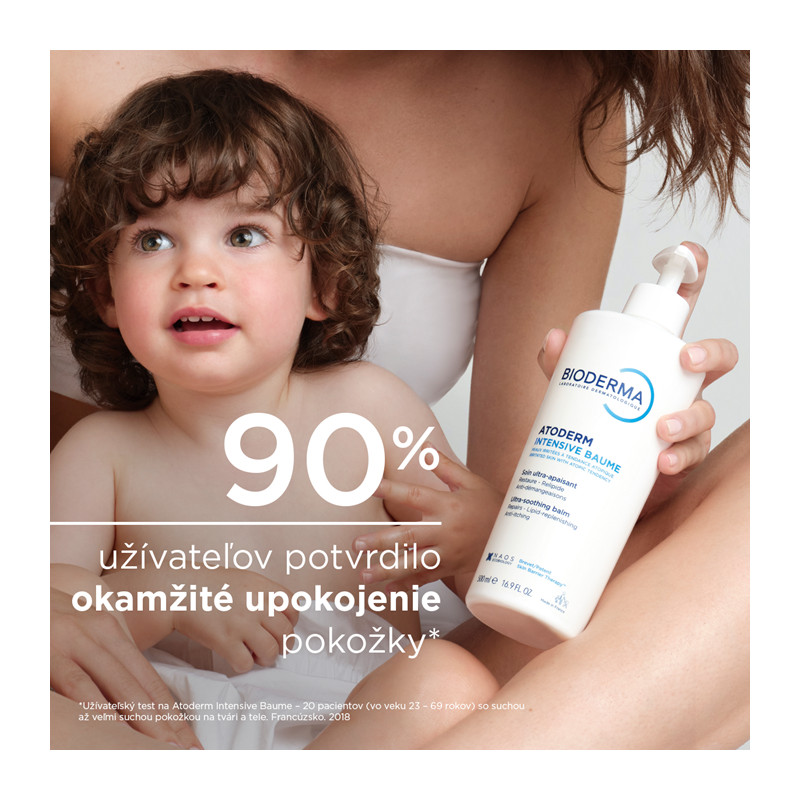 Balzam Bioderma Atoderm Intensive zmierňuje svrbenie citlivej a podráždenej pokožky a upokojuje pokožku s atopickým ekzémom. Obnovuje prirodzenú rovnováhu pokožky a tým zabraňuje jej podráždeniu. Balzam pokožku regeneruje, posilňuje a dodáva jej pružnosť. Upokojujúci balzam Bioderma Atoderm Intensive znižuje nutkanie škriabať sa, zvláčňuje pokožku a bráni jej vysušovaniu. Je vhodným doplnkom k medikamentóznej liečbe. Balzam odporúčame používať každý deň ako v období pokoja, tak i vo fáze vzplanutia. Pri pravidelnom používaní dochádza k predĺženiu pokojnej fázy a tým k zlepšeniu kvality života.