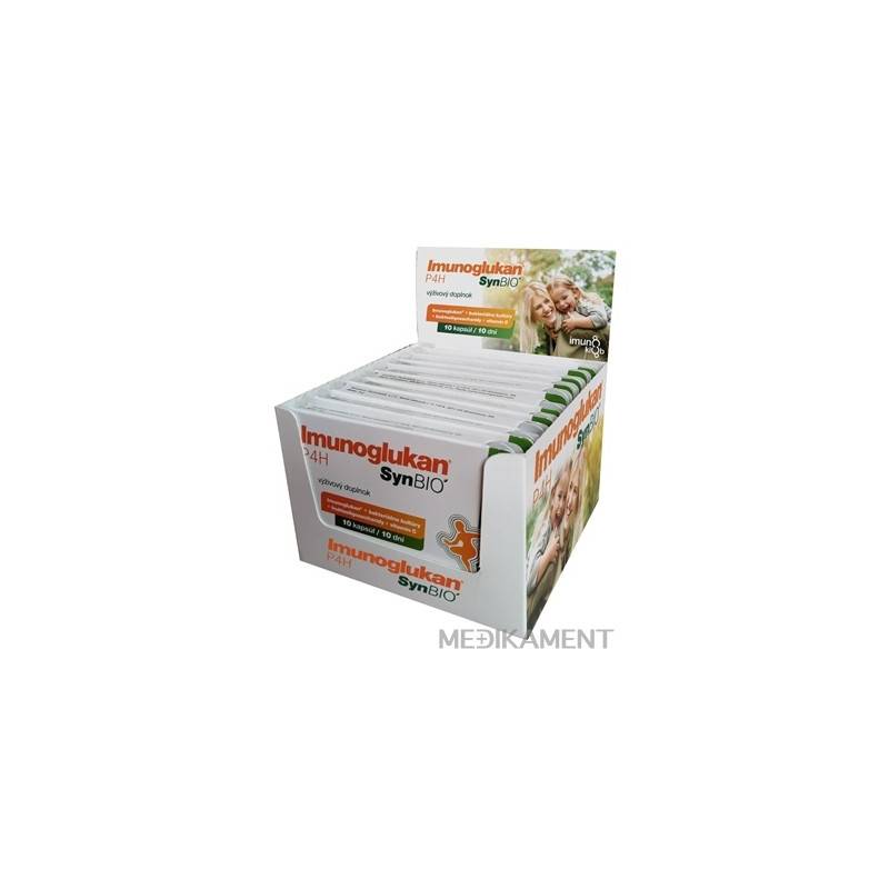 1 kapsula obsahuje: Imunoglukan® 100 mg (RVH*neurčená), vitamín C 100 mg (125% RVH*); 2,5.109 lyofilizovaných bakteriálnych kultúr (Bifidobacterium lactis BL2, Lactobacillus acidophilus LH5, Bifidobacterium bifidum BF2, Streptococcus thermophilus ST3, Lactobacillus casei LC1), fruktooligosacharidy 50 mg.