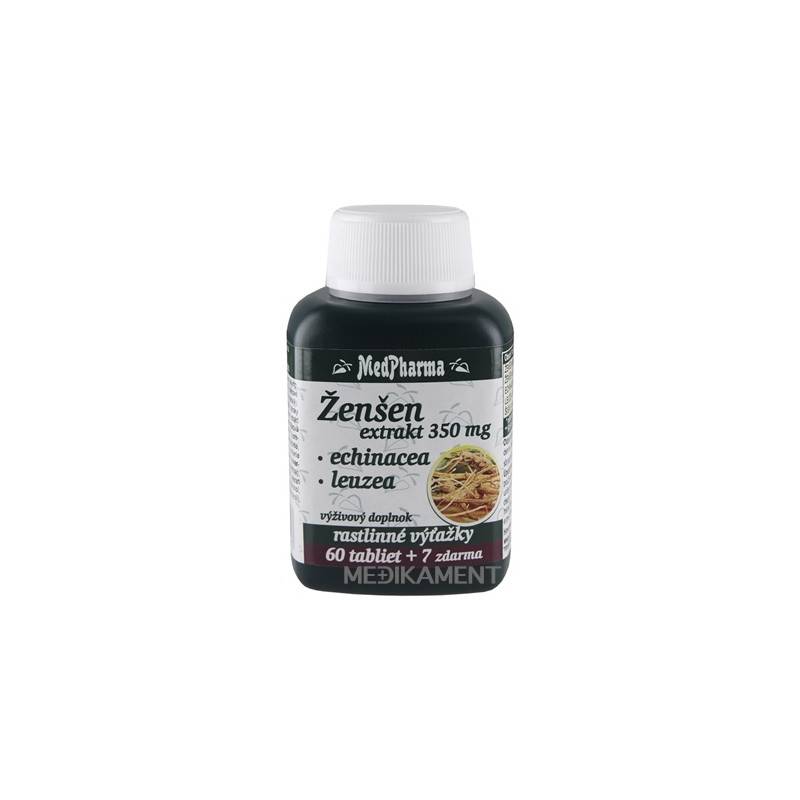 Zloženie: kórejský ženšen (Panax ginseng, extrakt z koreňa, ginsenosidy 5%), objemové činidlá (fosforečnan a uhličitan vápenatý), emulgátor (mikrokryštalická celulóza), sibírsky ženšen (Eleutherococcus senticosus, extrakt z koreňa, ginsenosidy 1%), leuzea saflorová (Rhaponticum carthamoides, extrakt 4:1 z koreňa), echinacea purpurová (Echinacea purpurea extrakt 10:1), šišak bajkalský (Scutellaria baicalensis, extrakt 4:1), stabilizatóry (kroskarmelóza sodná, hypromeláza, polydextróza), protihrudkujúce látky ( dioxid kremičitý, stearan horečnatý), leštiace látky (polyvinylalkohol, mastenec), zvlhčovadlo (polyethylénglykol), farbivá (dioxid titaničitý, karamel)