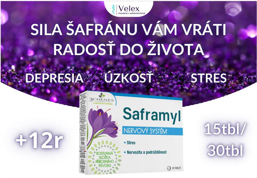 LITERATÚRA. 1. Akhondzadeh S, Fallah-Pour H, Afkham K, et al. Comparison of Crocus sativus L. and imipramine in the treatment of mild to moderate depression: A pilot double-blind randomized trial. BMC Complement Altern Med 2004;4:12. 2. Akhondzadeh S, Basti A, Moshiri E, et al. Comparison of petal of Crocus sativus L. and fluoxetine in the treatment of depressed outpatients: a pilot double-blind randomized trial. Prog Neuropsychopharmacol Biol Psychiatry 2007;31:439–442. 3.Hausenblas HA, Saha D, Dubyak PJ, Anton SD. Šafran ( Crocus sativus L. ) a veľká depresívna porucha: metaanalýza randomizovaných klinických štúdií. J Integr Med. (2013) 11:377–83. doi: 10.3736/jintegrmed2013056