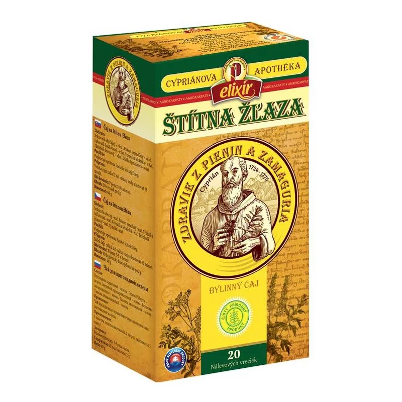 Zloženie: Srdcovník obyčajný – vňať, Pakost smradľavý – vňať, Ľubovník bodkovaný – vňať, Veronika lekárska – vňať, Túžobník brestový – vňať, Dúška tymiánová – vňať