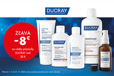 Zľava 8€ pri nákupe produktov DUCRAY nad 28€. Neplatí na už zlacnené produkty. Platí do 31.12.2025