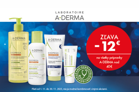 Zľava 12€ prí nákupe produktov A-DERMA nad 40€. Platí do 31.12.2025 alebo do vypredania.