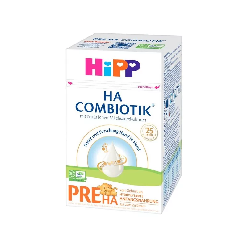 Potravina na osobitné lekárske účely používaná na odporúčanie a pod dohľadom lekára. HiPP HA1 Combiotik inovácia 2023 s hydrolyzovanou bielkovinou je určená pre deti so špeciálnymi výživovými potrebami. Obsahuje extenzívne štiepenú (hydrolyzovanú) mliečnu bielkovinu. Výživa HiPP HA1 Combiotik je ľahko stráviteľná a dobre zasýti. Možno ju podávať od narodenia.