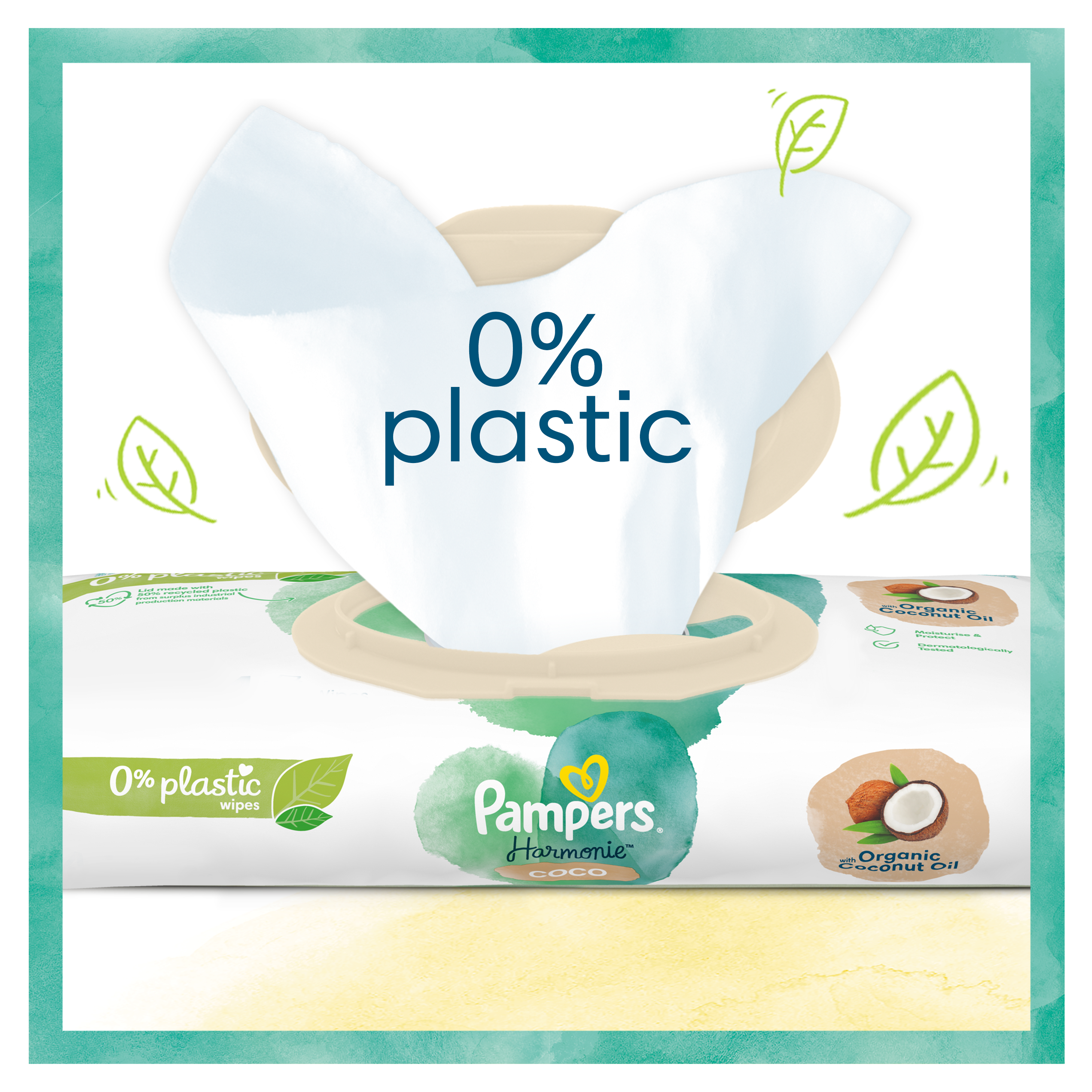 Pokožka vášho dieťatka je veľmi citlivá a zaslúži si jemné čistenie všetkých najcitlivejších častí tela, ako je zadoček. Vlhčené obrúsky Pampers Harmonie Coco obsahujú organický kokosový olej na hydratáciu a ochranu jemnej pokožky vášho dieťatka. Obsahujú 0 % plastov, sú vyrobené z vláken 100 % rastlinného pôvodu. Enzýmy v stolici a moči menia pH pokožky a zvyšujú riziko podráždenia a vyrážky. Jedinečné zloženie Pampers Harmonie Coco je dermatologicky testované a chráni prirodzené pH pokožky lepšie ako vodou navlhčená bavlnená látka a redukuje riziko podráždenia pokožky. Keďže obrúsky Pampers Harmonie Coco sú vyvinuté s ohľadom na citlivú pokožku novorodencov, neobsahujú alkohol a farbivá.