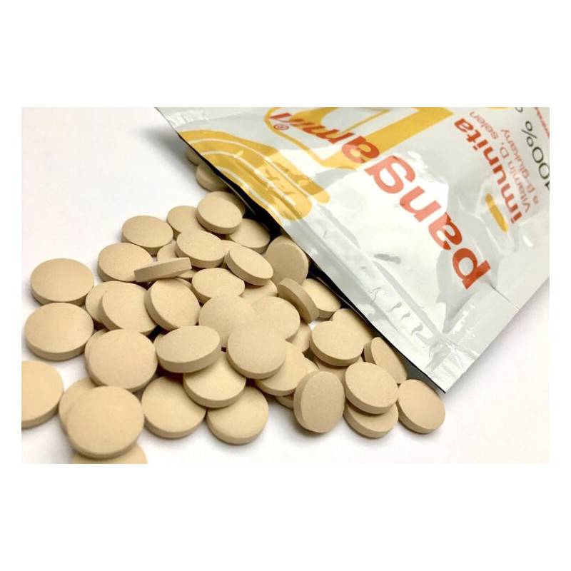 Výživový doplnok obsahujúci pivovarské kvasnice (obsahujú lepok), kvasnice obohatené selénom, kvasnicové (Saccharomyces cerevisiae) beta-glukány, kvasnice s vitamínom D2, sladový extrakt (obsahuje lepok), protihrudkujúca látka (oxid kremičitý).