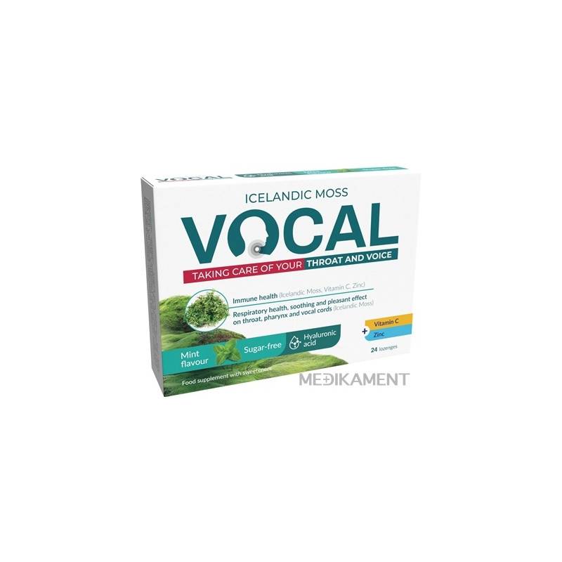 Výživový doplnok so sladidlami, islandským lišajníkom, vitamínom C, zinkom a kyselinou hyalurónovou. Vo forme pastiliek rozpustných v ústach, s mätovou príchuťou.