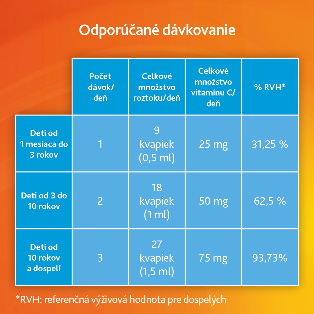 Liek obsahuje vitamín C, ktorý je dôležitý pre rast a udržiavanie zdravých kostí, zubov, ďasien, väziva a ciev, pre tvorbu látok zúčastňujúcich sa na prenose nervových vzruchov, pre tvorbu hormónov, vstrebávanie železa z potravy, normálnu imunitnú odpoveď na infekciu a hojenie rán. Ľudský organizmus si vitamín C nevie sám vytvoriť, preto je potrebné ho do...