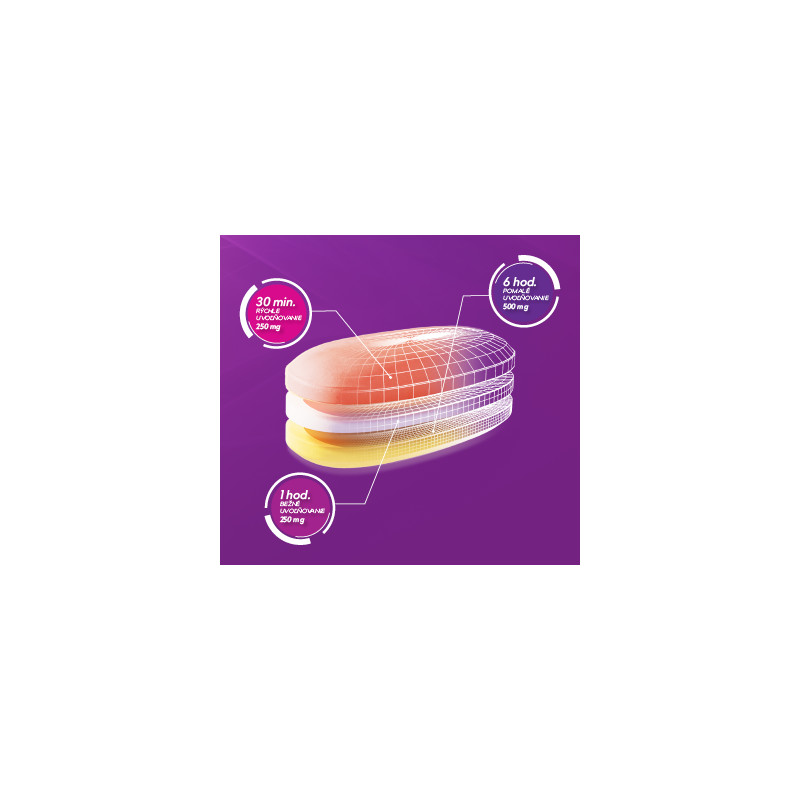 Špeciálna 3-vrstvová tableta s vysokým obsahom 1 000 mg vitamínu C. Tableta zabezpečuje efektívne a kompletné uvoľnenie celkového obsahu vitamínu C. Každá vrstva obsahuje určité množstvo vitamínu C, ktoré sa uvoľňuje v časových intervaloch od 5 minút až do 6 hodín, pre jeho lepšie využitie v organizme.