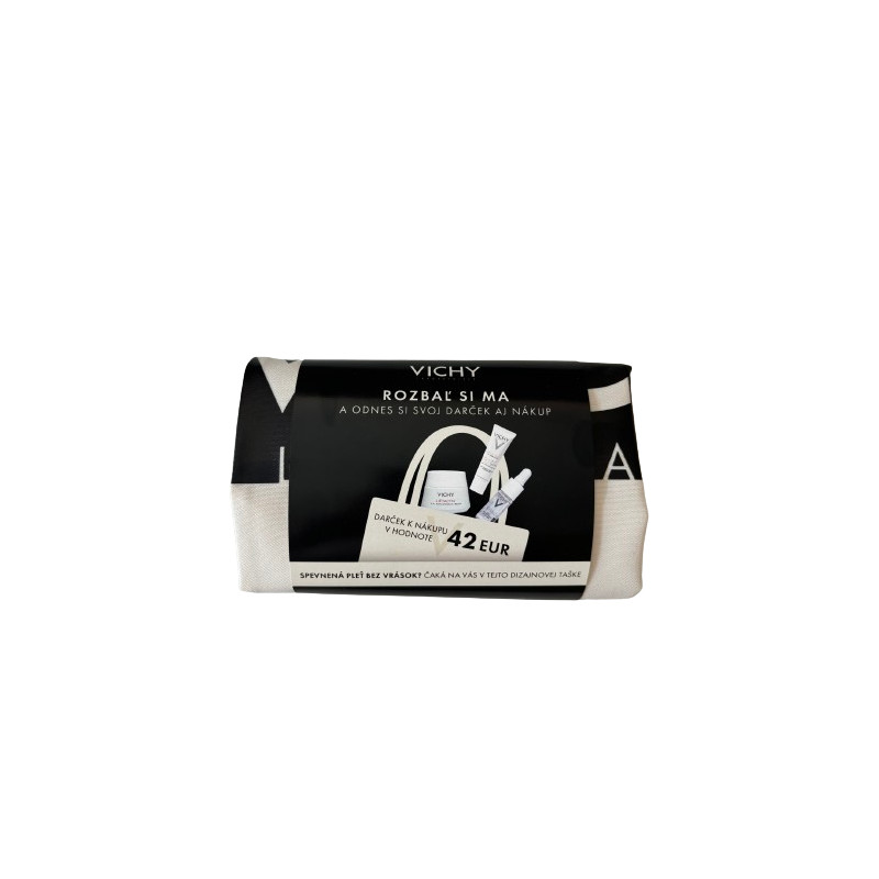Darčeková taška obsahuje rad Liftactiv H.A. Filler 10 ml proti starnutiu, ktorý je určený na hydratáciu, vypnutie a spevnenie pleti, krém Liftactiv H.A. 15 ml na prevenciu prvých príznakov starnutia a redukciu jemných vrások a Capital Soleil UV-Age denný SPF 50+ 15 ml na ochranu pleti pred fotostarnutím.