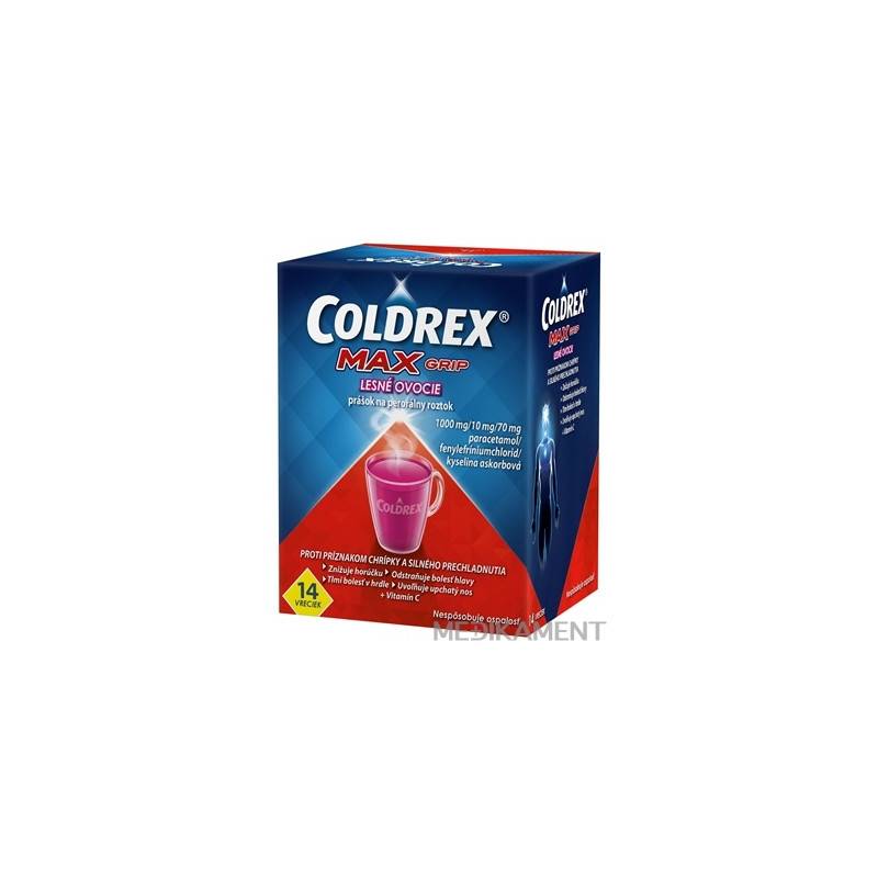 COLDREX MAXGRIP LESNÉ OVOCIE je určený na krátkodobú liečbu príznakov chrípky a akútnych zápalov horných dýchacích ciest, vrátane horúčky, bolesti hlavy, bolesti v hrdle, bolesti kĺbov a svalov, upchatého nosa, zápalu vedľajších nosových dutín a s ním spojenú bolesť a akútnej katarálnej nádchy.