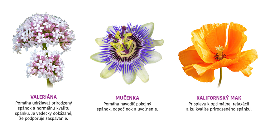 s výťažkami z valeriány, mučenky a kalifornského maku a vitamínmi B3 a B6