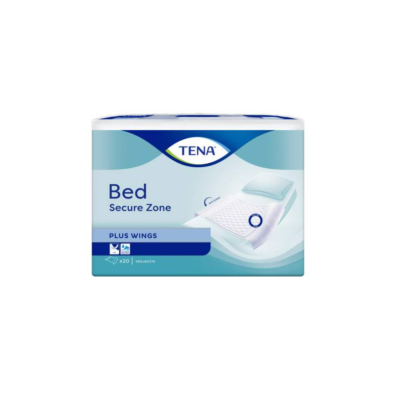 Absorpčná podložka TENA Bed Plus Wings so záložkami slúži ako doplnková ochrana postele, kresla či vozíka a napr. pri výmene absorpčnej pomôcky. Vďaka krídelkám zostáva podložka na svojom mieste.