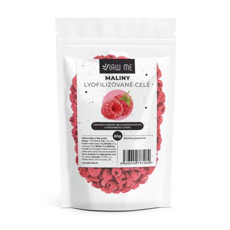 Mrazom sušené plátky malín, bez konzervantov a pridaného cukru.