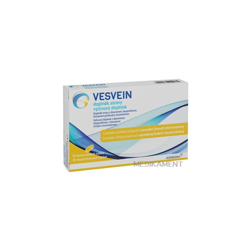 Diozmín - 450 mg; hesperidín - 50 mg; listnatec trnitý (Ruscus aculeatus (L.)), koreň - 37,5 mg, bromelaín (z Ananas comosus (L.) Merr, stonka) - 75 mg, extrakt z ananásu (Ananas comosus (L.)), stonka - 5 mg. Viac na adc.sk