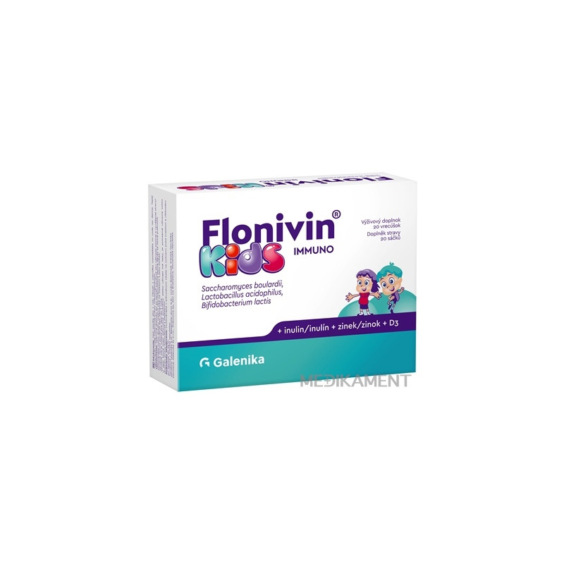 Výživový doplnok. Obsahuje 15 miliárd prospešných baktérií Lactobacillus acidophilus NCFM® a Bifidobacterium lactis Bi-07®, kvasinky Saccharomyces boulardii, prebiotikum inulín, vitamín D3 a mikroelement zinok.