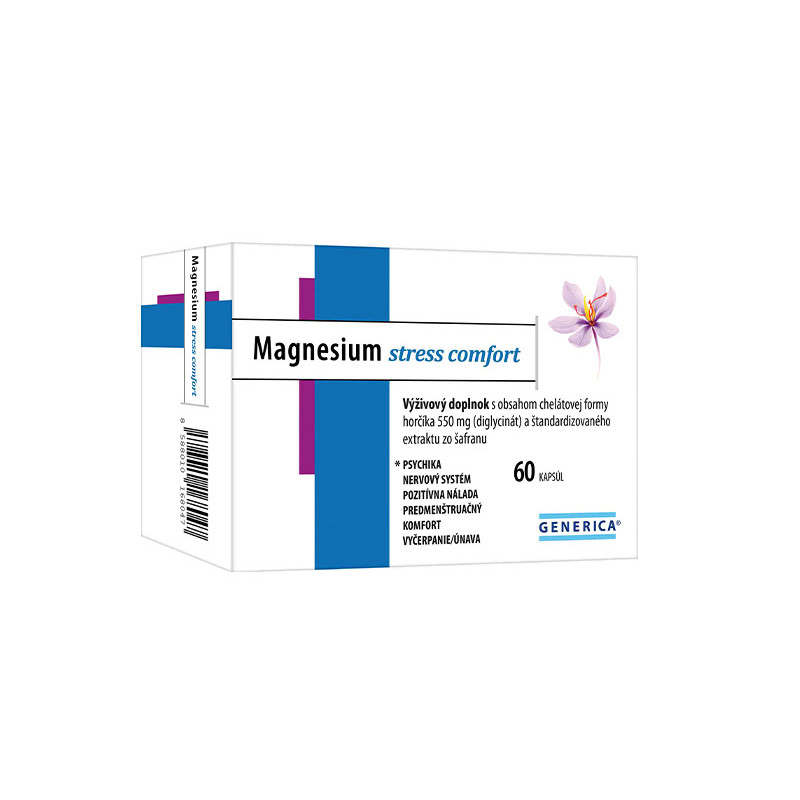 Prípravok Magnesium stress comfort obsahuje kombináciu účinných látok, ako sú diglycinát horečnatý a štandardizovaný extrakt zo šafranu, ktoré šetrne a čo najprirodzenejším spôsobom napomáhajú k správnemu fungovaniu nervového systému, k správnej funkcii psychiky a prispievajú k emocionálnej rovnováhe organizmu.