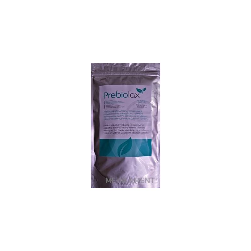 Prebiotický kokteil Prebiolax vyrobený z koncentrovanej rozpustnej rastlinnej vlákniny inulínu a pšeničnej vlákniny na báze dextrínov bez lepku, so schváleným výživovým tvrdením "s vysokým obsahom vlákniny".