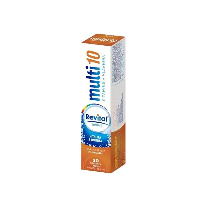 Výživový doplnok Revital® multi 10 vitamínov + vláknina - vitamínové tablety s vlákninou s príchuťou pomaranč.