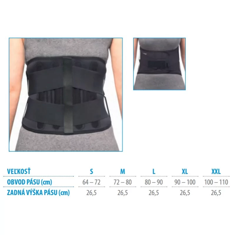 Opora, odľahčenie a stabilizácia driekovej chrbtice s oporou brušnej steny.